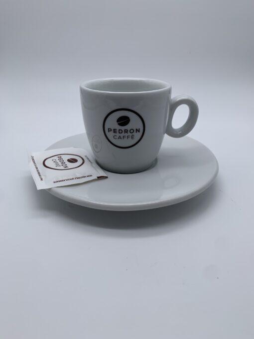 De koffie van Pedron Caffè kennen we natuurlijk allemaal, maar wist je ook al dat Pedron Caffè bijpassend servies heeft? Zo maak jij het beste van jouw koffie momentje. Deze kop-en-schotel set is perfect geschikt voor een caffè lungo, maar ook een dubbele espresso past in dit kopje. Geniet van jouw koffiemomentje en combineer de koffie van pedron caffè met het servies van pedron caffè.