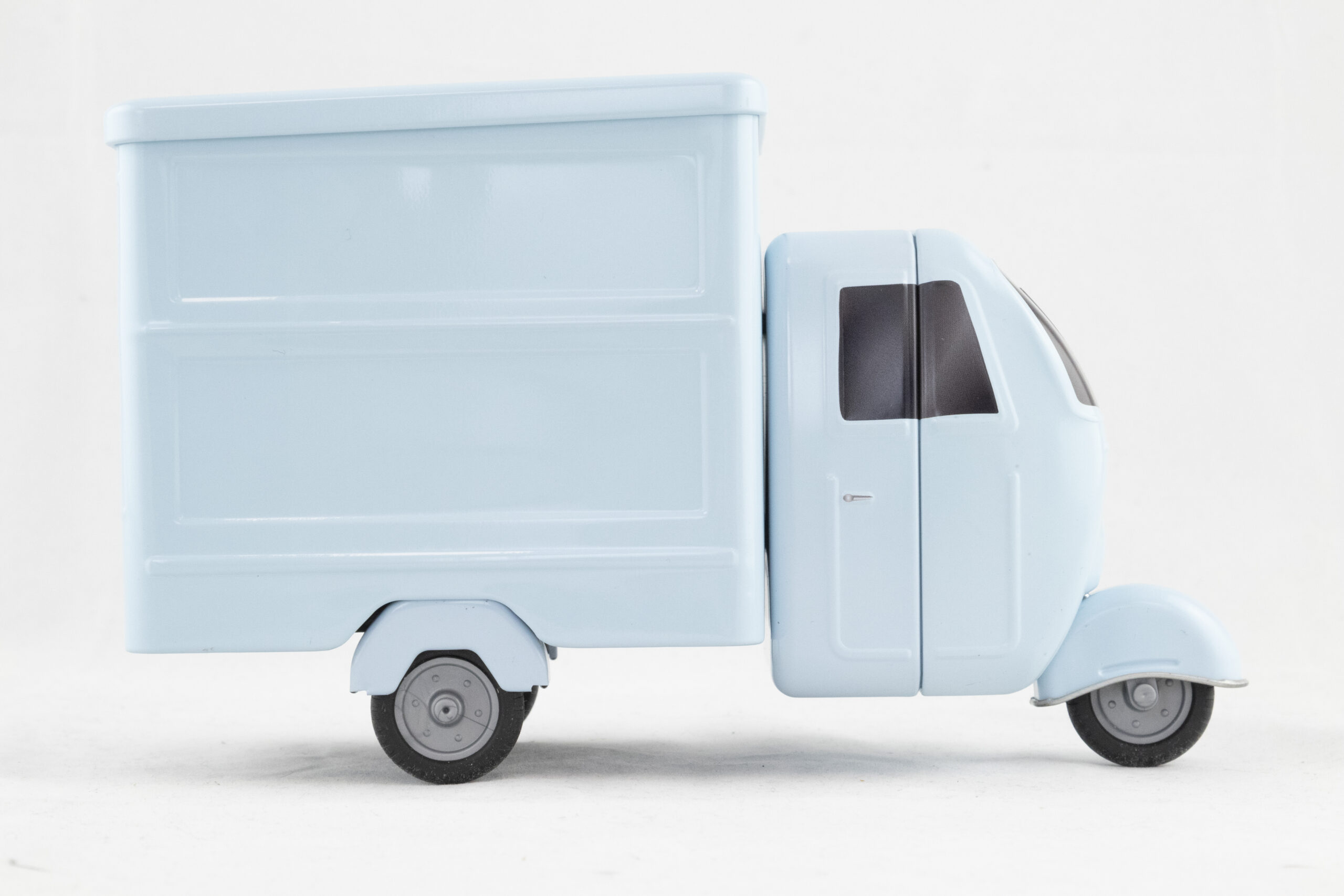 Onze blauwe Piaggio Ape koekblikken brengen een stukje Italiaanse charme op wielen naar uw assortiment. Vul het met chocolade, koekjes, amaretti of cannoli en creëer een luxe verpakkingservaring die uw klanten blijft bijblijven.