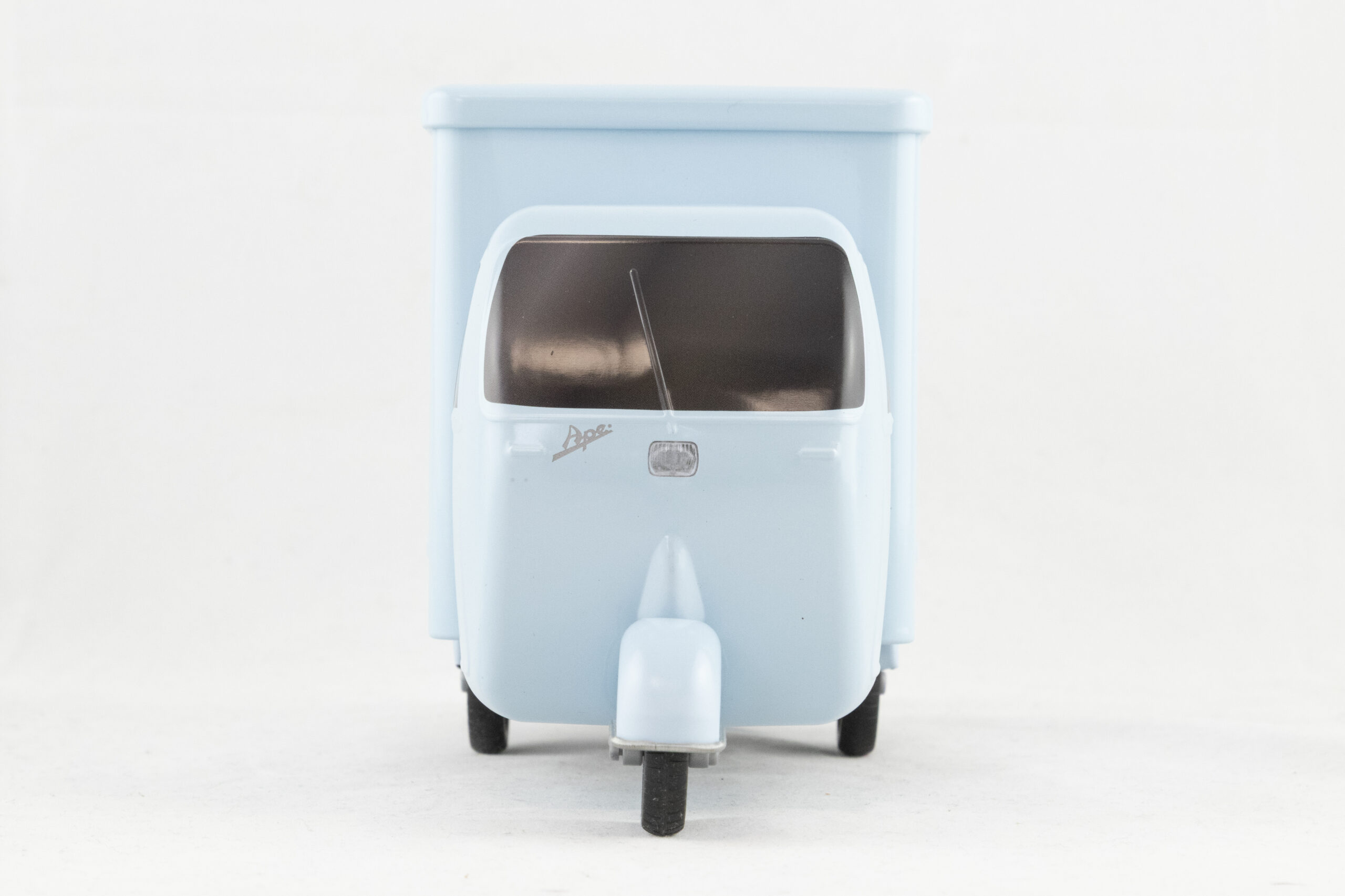 Het herbruikbare en stijlvolle blik trekt direct de aandacht en is ideaal voor relatiegeschenken, promotionele acties of een opvallende presentatie in uw winkel. Dankzij de vrolijke blauwe kleur en het authentieke Piaggio Ape-design straalt elk product Italiaanse flair en vakmanschap uit.